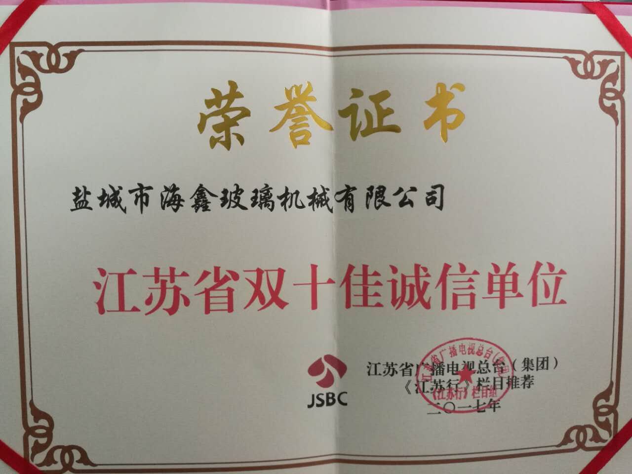 江蘇省雙十佳誠信單位